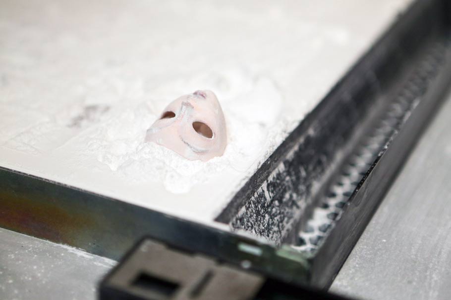 The process of the rapid prototyping department is complex. It begins with scanning a hand-sculpted maquette head into 3D, and then refining it with digital software—Maya mostly, and ZBrush sometimes. This modeling process is especially important because 3D printers tend to soften out edges and details. The digital models have to be purposefully exaggerated to retain their sculptural origins and compensate for the printing output.