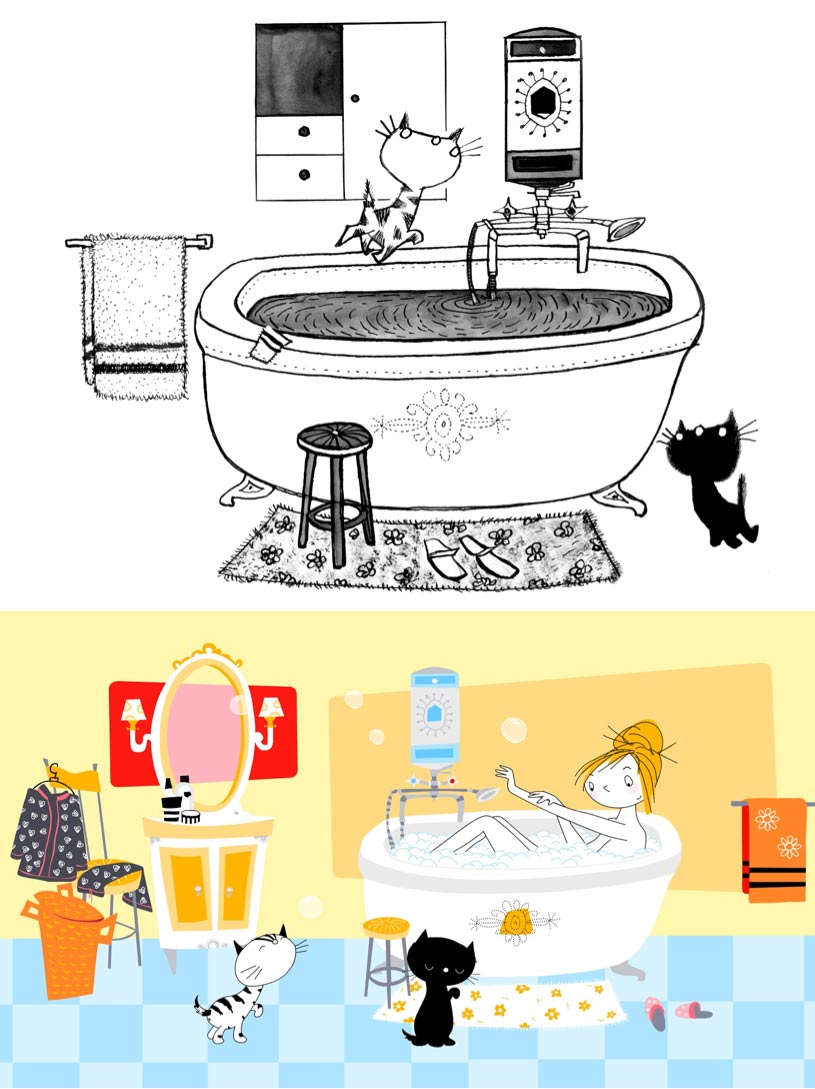 Hans Walther: Many of Fiep’s characters have been used in children’s films already, but they were always live-action. With Pim and Pom the choice for animation was obvious. Thanks to over one thousand preserved drawings of the cats and their habitat, we knew what they look and move like from every angle.