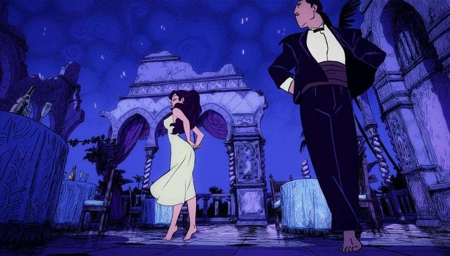 Reflecting the individual essays of Gibran’s original work—the book is divided into chapters “On Freedom,” “On Good & Evil,” “On Love,” and so on—but also Gibran’s personal love of drawing, the film’s animated segments have been designed and directed, in mostly hand-drawn style, by a diverse roster of artists: Tomm Moore (Song of the Sea, The Secret of Kells), Joan Gratz (Mona Lisa Descending a Staircase), Bill Plympton (Guard Dog, Cheatin’), Nina Paley (Sita Sings the Blues), Joann Sfar (The Rabbi’s Cat), Paul and Gaetan Brizzi (“Firebird Suite” in Fantasia 2000), Michal Socha (Chick and one of the greatest all-time Simpsons openings) and Mohammed Harib (Freej). The wraparound sequences directed by Allers are toon-shaded computer animation.