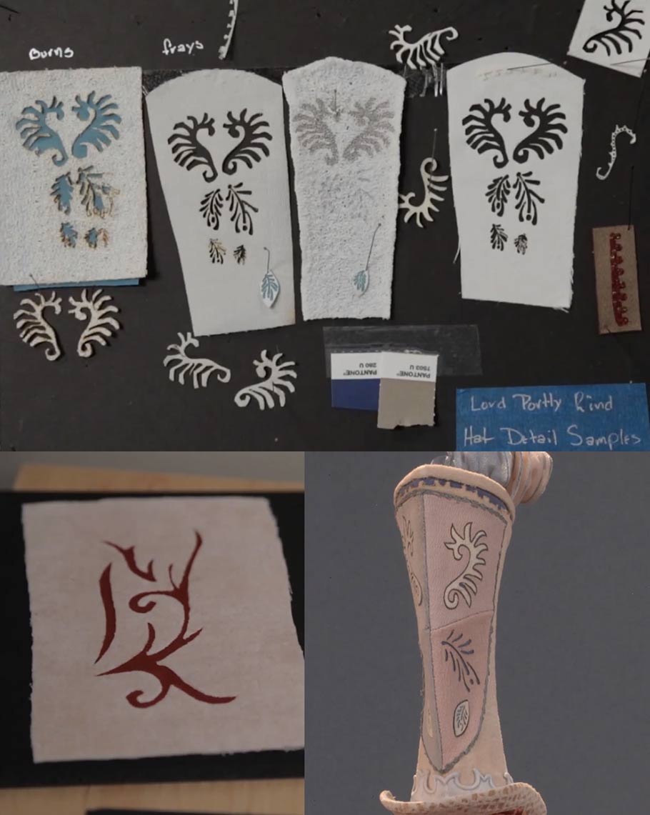 When working with such small subjects, scale is always a concern. If a character is supposed to be wearing denim, you cannot use the actual fabric, because once it is blown up to full size on the screen, the scale of the fabric’s weave will be incorrect. Laika uses laser etching to create everything from pressed velvets and lace to small pieces of costume hardware, like buttons. “You can program just how far down [the laser] goes down to the minutest, not-seen-by-the-eye measurement. I draw the [buttons] out and then they’re reduced in size and laser-etched. Then, when you blow them up on the screen, you can see all the detail in them.”