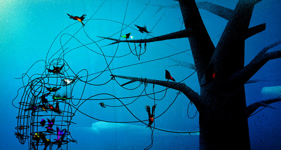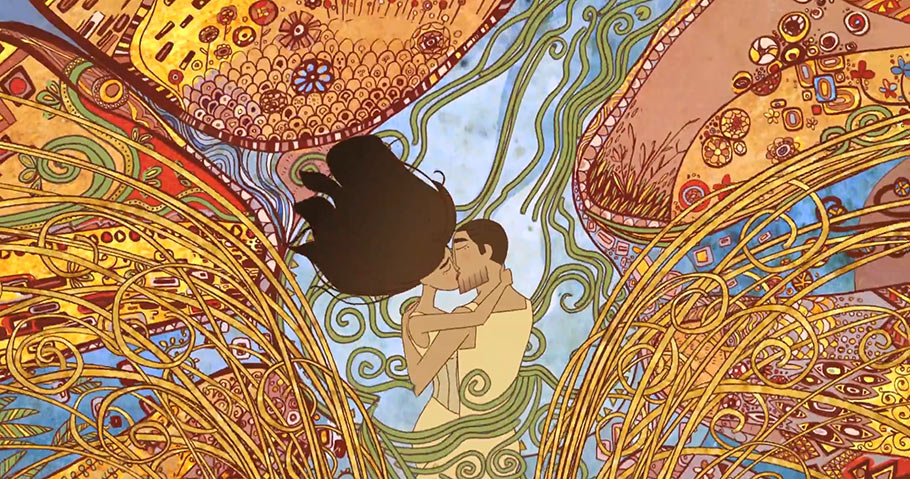 As evidenced by the trailer, the film’s anthology approach feels almost like watching a mini-animation festival. The film’s “chapters” were created by nine animation directors, each working in their own unique style: Tomm Moore (Song of the Sea), Joan Gratz (Mona Lisa Descending a Staircase), Bill Plympton (Guard Dog, Cheatin’), Nina Paley (Sita Sings the Blues), Joann Sfar (The Rabbi’s Cat), Paul and Gaetan Brizzi (“Firebird Suite” in Fantasia 2000), Michal Socha (Chick) and Mohammed Harib (Freej). Allers’s wrap-around narrative was created with cel-shaded CGI designed to look illustrative.