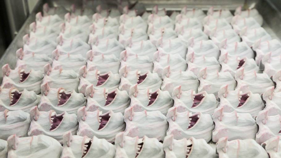 With five color printers on site, Laika can print 100 to 150 mouths in a day for a character like Eggs, whose head is relatively small, however larger characters pose a greater printing challenge. For example, there is a character in The Boxtrolls whose face is so large they could only produce 12 a day.