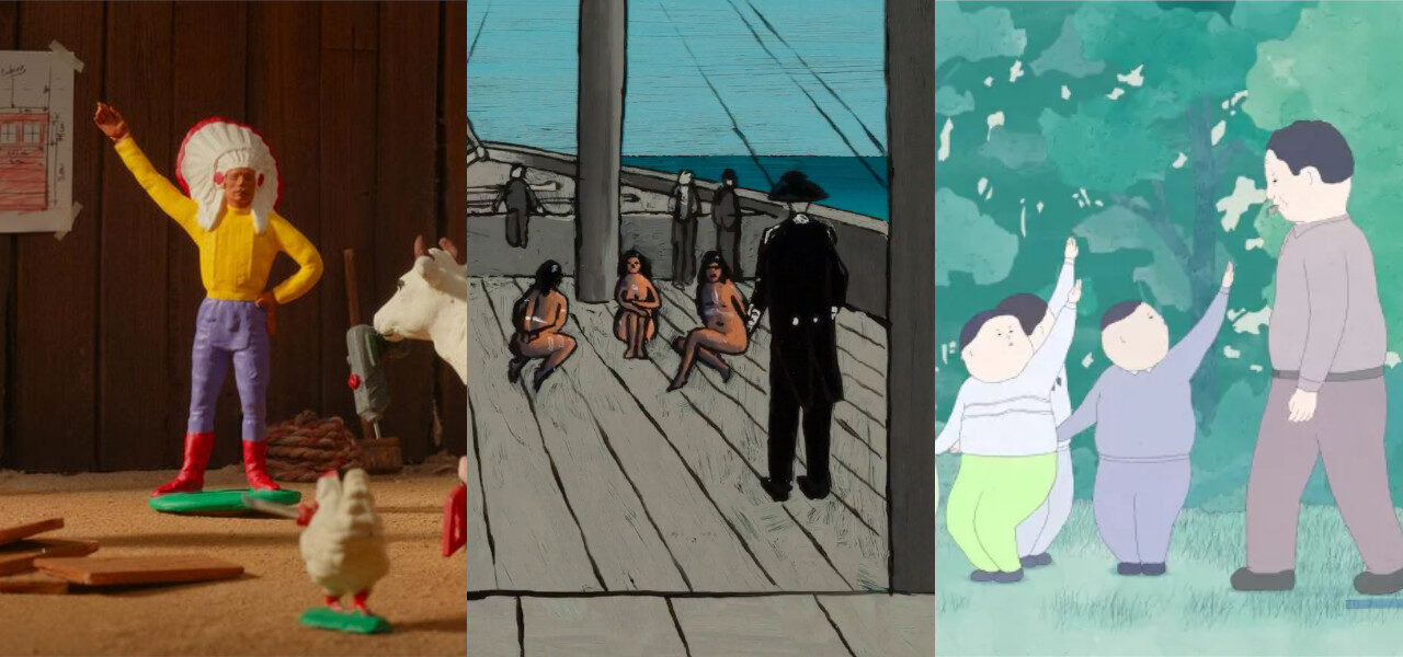 Pictured at top: “A Town Called Panic: The Summer Holidays,” “Darwin’s Notebook,” “Bird in the Peninsula”