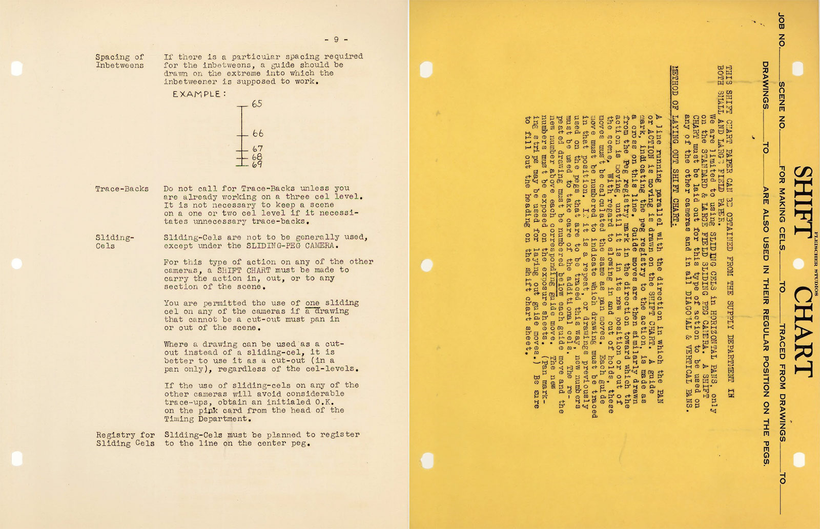 Here’s the studio’s internal production reference guide from 1940, available to download for free from Archive.org. It’s a hugely valuable document that offers a detailed look at how animation was produced eighty years ago.