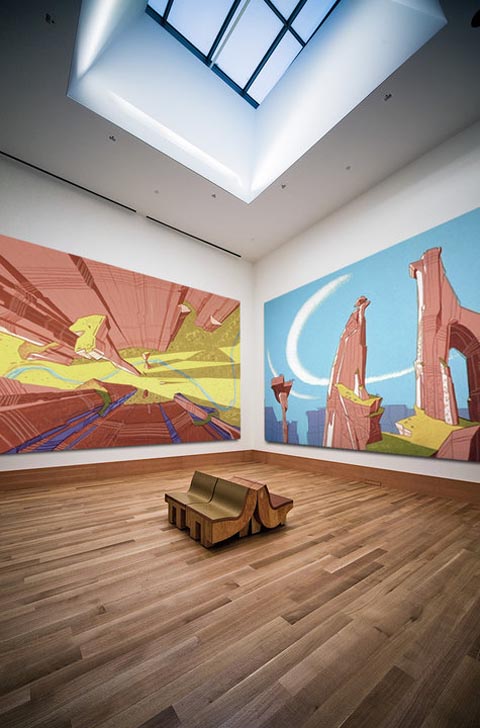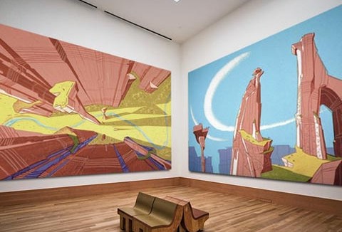 Too bad none of us can see it though because it doesn’t actually exist. These enticing gallery concepts were created for fun by David de Rooij who co-directed the short Slim Pickings Fat Chances. He was inspired to make these images after seeing this post on the Animation Backgrounds blog.