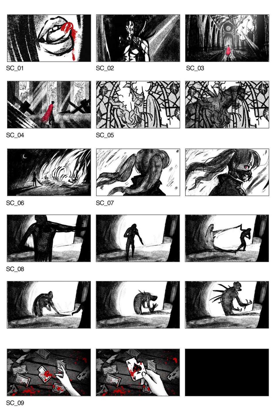 That said, I still had to do a formal pitch in order to sell Bandai Namco and the Code Vein team on the concept and aesthetic for the teaser, as this marketing campaign was a slightly new strategy for the company. Code Vein is a brand new IP and doesn’t have a pre-existing audience, so Stephen felt that commissioning a unique piece of animation would ultimately generate more interest and speculation prior to the game’s official announcement while still delivering the mood and theme of the title.