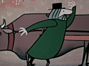 Ushev’s ‘The Wolf’ is a stark, painterly short that delves into the primal tension between man and nature in a frozen, impressionistic wilderness.