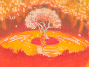 His style complements the whimsical narrative of a woman taking an unconventional cab ride to the moon.