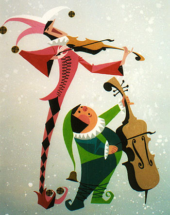 While Eyvind Earle is the best known of the Disney artists who illustrated Christmas cards, a number of other Disney artists had successful careers as card designers including BAMBI background stylist Tyrus Wong and longtime background painter Ralph Hulett. Hulett’s son, Steve, who is the business rep of the Animation Guild Local 839, is posting thirty-six of his father’s Christmas cards on the Animation Guild blog. There’ll be one a day between now and New Year’s Day. The first three cards are already posted: