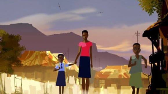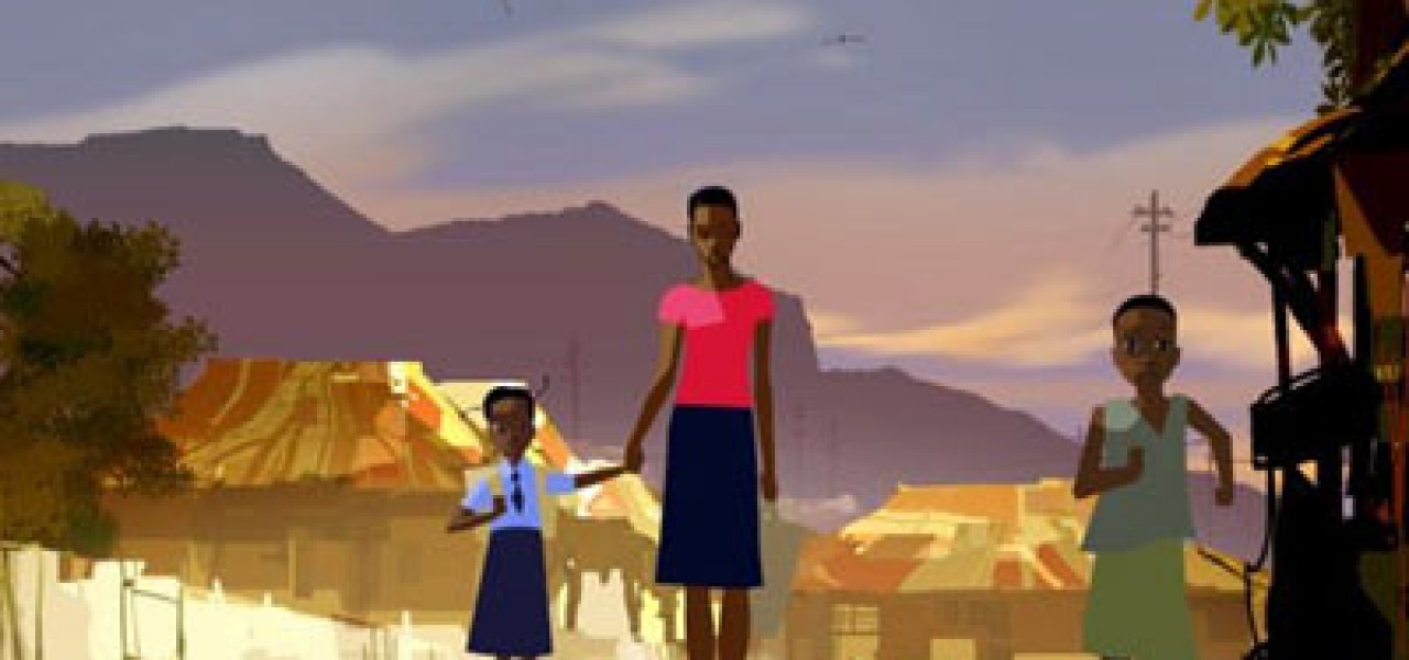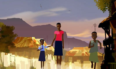 My initial designs and all backgrounds were done in Photoshop. The animation was roughed in traditionally – pencil on paper – then cleaned up in Flash and composited in After Effects. The tight soul-reggae music track is by Paul Maxx and Deep Rooted Production. Eva’s beautiful Jamaican patois is spoken by Susan Lawson-Reynolds. Script by Mark Holloway. Adapted by Leone Ross. Co-direction is by myself and Richard Burdett for ANIMAGE FILMS.