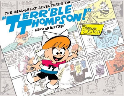 This September, Fantagraphics is reprinting animation director Gene Deitch’s rarely seen mid-Fifties syndicated comic strip TERR’BLE THOMPSON. Here’s a bit more about the book from its press release: