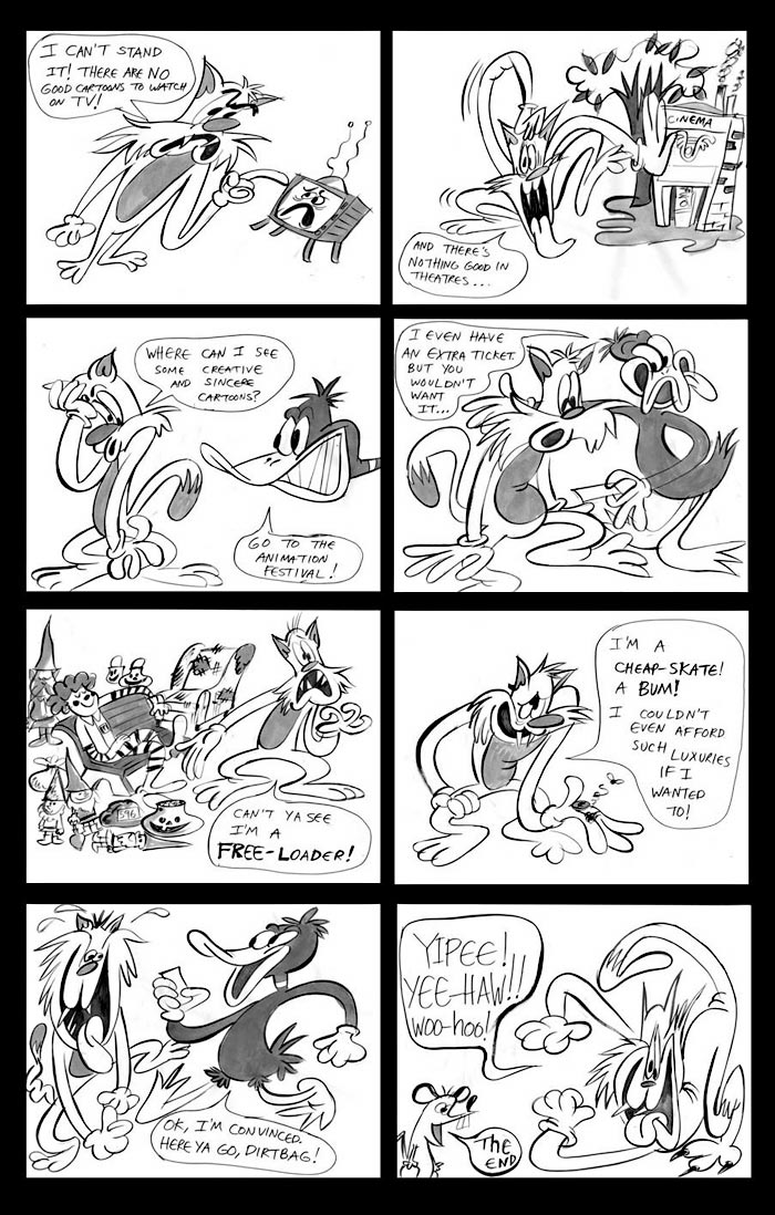 It was a very tough decision – but the Brewmasters have spoken!The winning entries came from Rex Hackelberg (above – click on image to see his full comic strip entry) – and Lars Edwards, whose spot-on rendition of “The Animation Pimp” won us over. These two boys will be waltzing around the Ottawa festival like big shots because they will get in free. Congratulations, Winners!And a sincere Thank you to all our readers for entering our little contest. See you at the Ottawa International Animation Festival from September 21-25!