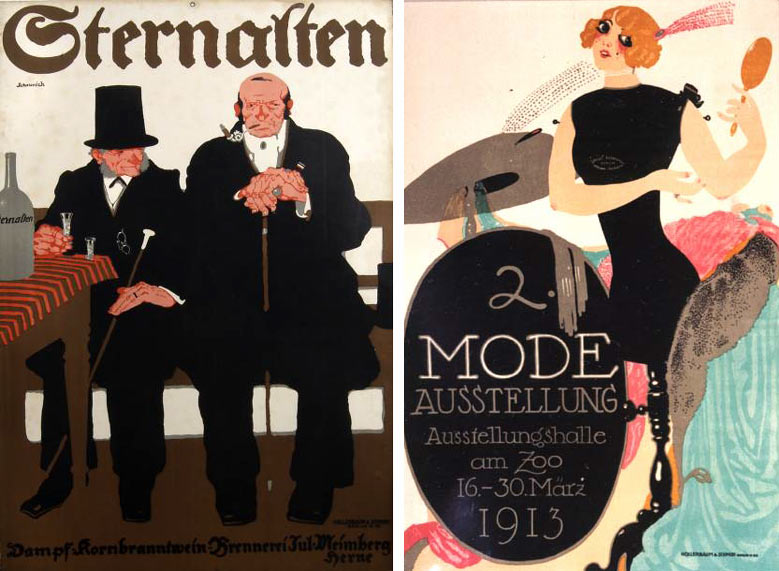 UPDATE #4 – JJ Sedelmaier writes, “Regarding German poster design, check out the work of Ludwig Hohlwein. He’s the top! He influenced scads of his contemporaries and modern graphic designers as well, even the likes of Seymour Chwast. His breakdown of color and dramatic art direction is awesome! The ‘drawback’ is that much of the work towards the end of his career supported a politically incorrect cause (Hello, Adolf. . .)”