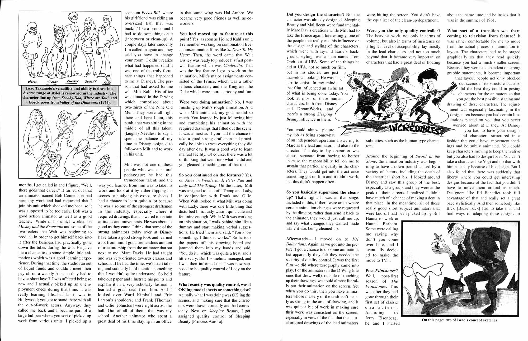 With Iwao Takamoto’s passing, I thought it would be an appropriate time to share this interview I conducted with him in January 1999. It was originally published in ANIMATION BLAST #3. In our chat, Iwao discusses being interned in the US during World War II because of his Japanese ancestry, working with Milt Kahl at Disney, and his illustrious career at Hanna-Barbera. He was a top-notch draftsman, and in my limited dealings with him, always a friendly and affable fellow. As a sidenote, you’ll notice that Iwao mentions Tom Oreb briefly during the interview, and if I recall correctly, Iwao was the first person to truly make me aware of Tom’s work.