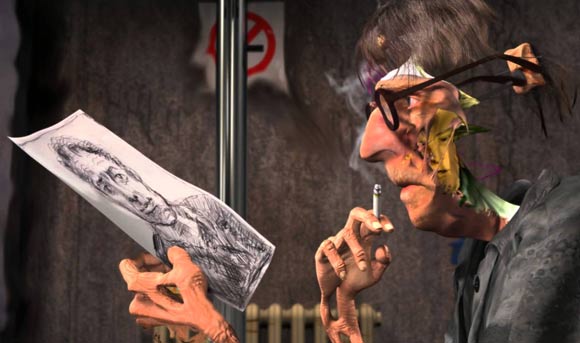 I saw a screening of Chris Landreth’s latest computer animated film, Ryan, last week. The film is an animated documentary, somewhat in the vein of Paul Fierlinger’s And Then I’ll Stop, where unscripted conversations by real people form the soundtrack of the film. In this case, the subject is Ryan Larkin, an animator who worked for the National Film Board of Canada in the late ’60’s and early ’70’s. Probably his two best known works are Walking (1969) and Street Musique (1971). After the latter film, Larkin had something of a personal meltdown, due at least in part to substance abuse.