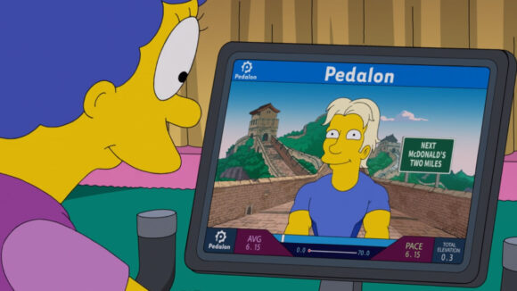 Which episode? “One Angry Lisa,” episode two of the show’s 34th season, sees Marge get a new exercise bike that takes her on a virtual tour of the Great Wall of China. During the ride, Marge’s instructor says, “Behold the wonders of China. Bitcoin mines, forced labor camps where children make smartphones.”
