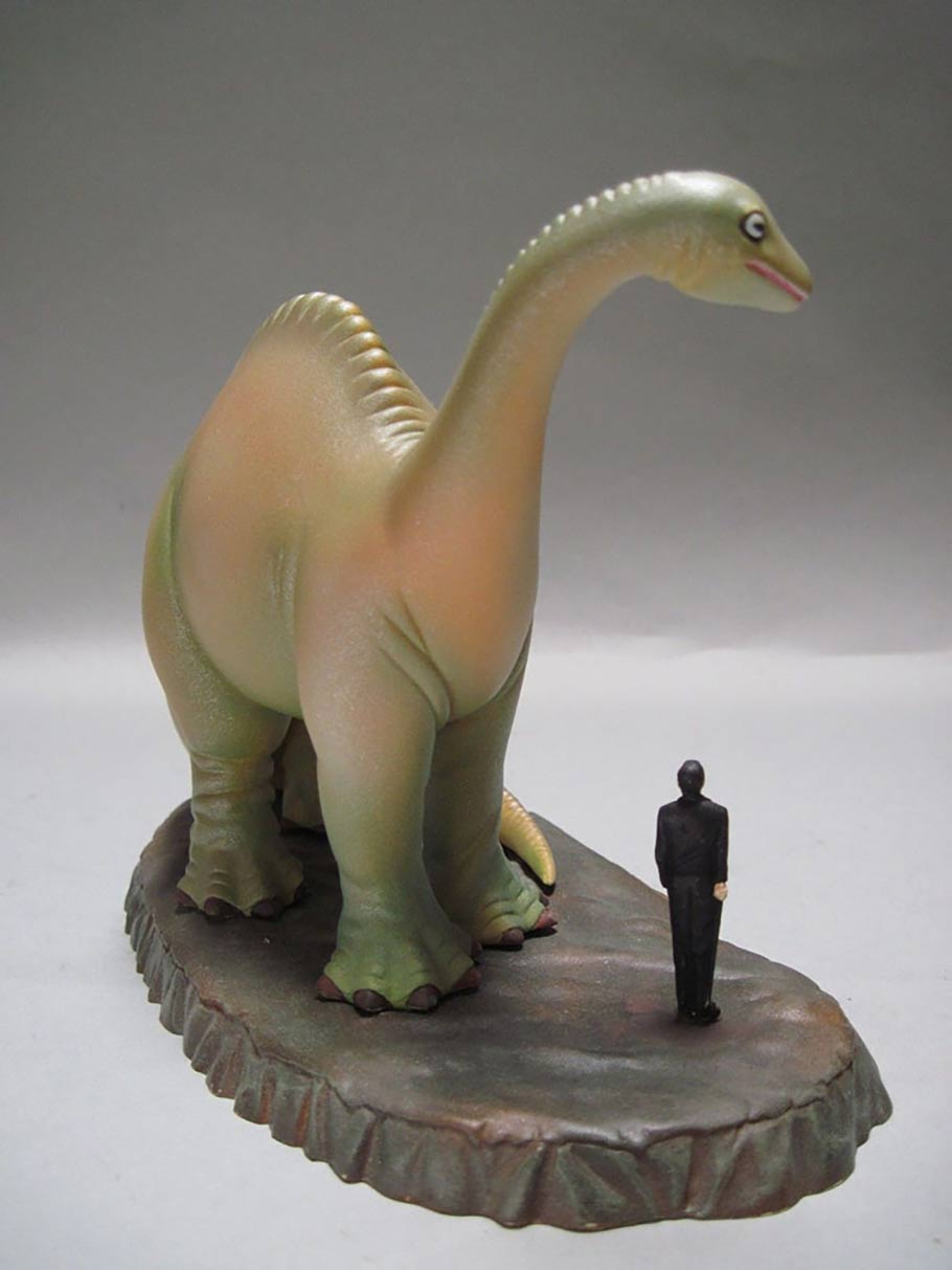This Gertie the Dinosaur and tuxedoed Winsor McCay garage kit is especially appropriate in 2014, the 100th anniversary of McCay’s seminal animated film. But it’s not a new piece: ILM modelmaker Carol Bauman sculpted and released it back in 1996 through her company Tullymonster. (She is currently a model supervisor at Kerner Optical.) The solid resin figure was hand-painted by Bill Craft of Craft Beast Designs.