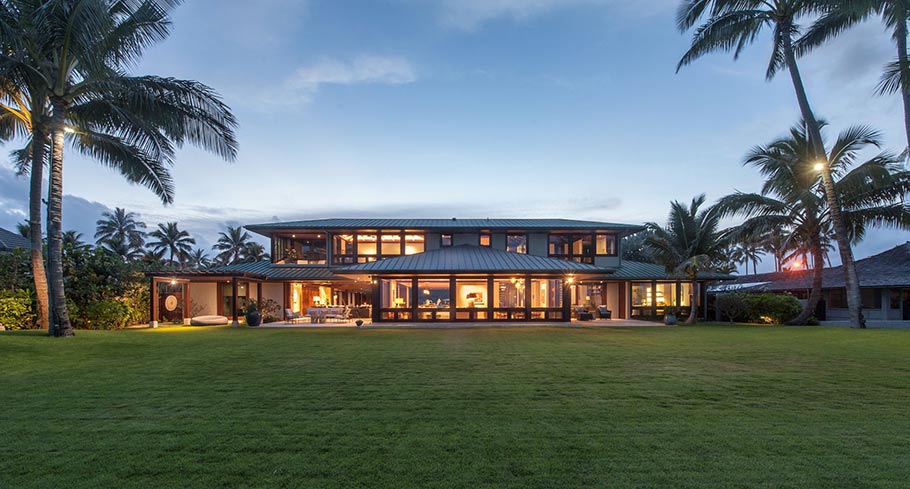 Built just two years ago by San Francisco-based Gast Architects, the 10,593-square-feet compound has 7 bedrooms, 9 bathrooms, and 125 feet of beach frontage. The LEED Certified Gold home includes a “resort-size” pool with spa/waterfall, gym, media room, and elevator. Asking price: $20,138,000.