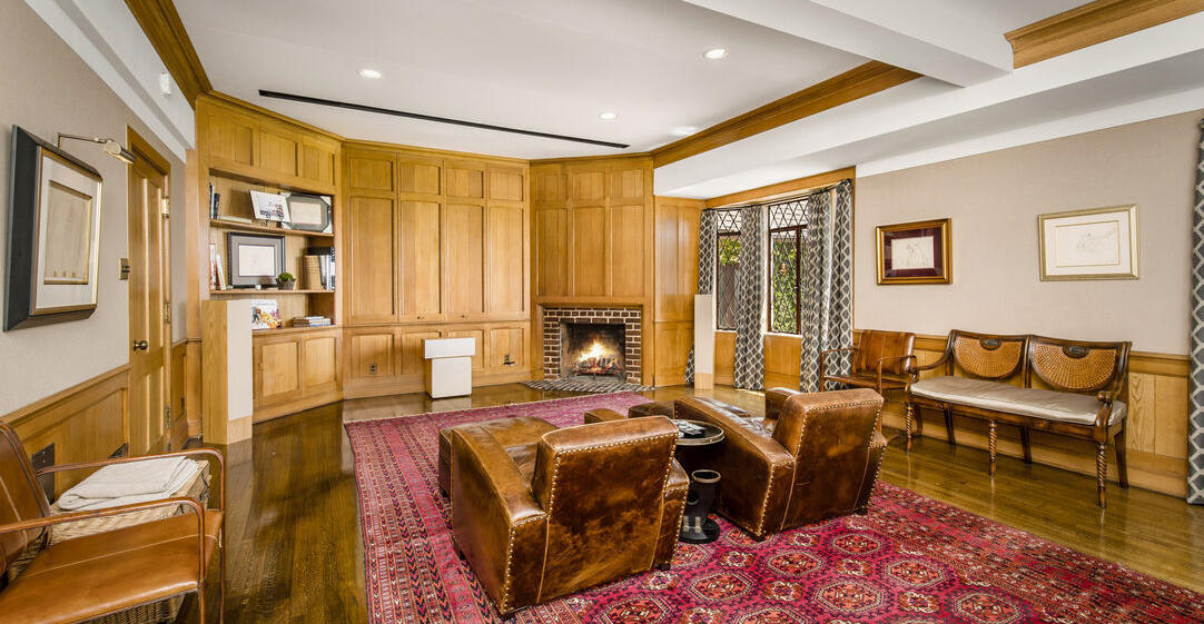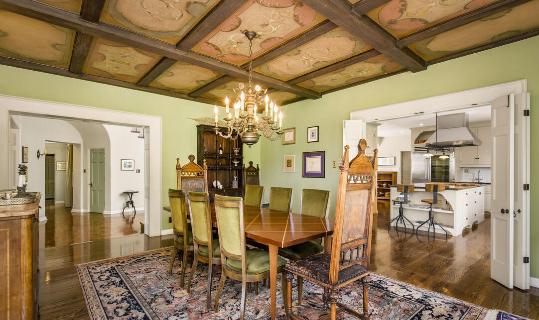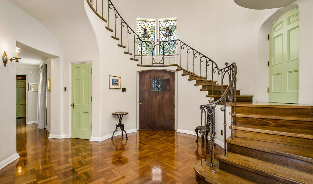 Clocking in at 6,388 square feet, the home has a distinct “Disney” look. It features a Mediterranean entry, a circular rotunda, and painted vaulted beamed ceilings as well as original stained leaded glass windows and a Juliet balcony. The home also has a theater, of course, where Disney could watch dailies or screen finished versions of the classic films that his studio produced during the years he lived in the home.