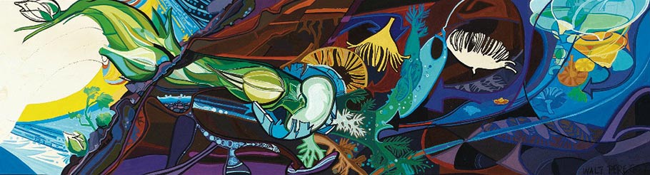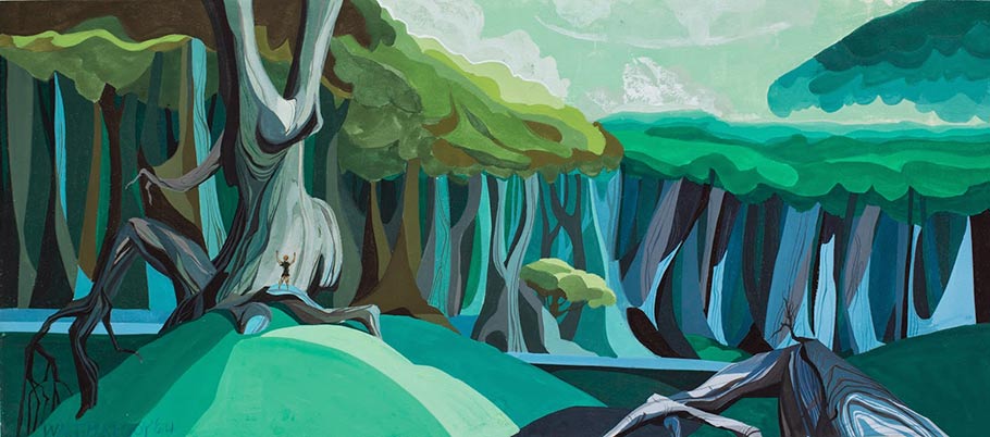 Born Alwyn Walter Peregoy in Los Angeles in 1925, and raised on a small island in San Francisco Bay, Peregoy often described his background as “American white trash.” As a teenager, he attended Saturday art classes at Chouinard Art Institute. He dropped out of high school in the tenth grade, and was hired at Disney at the age of 17 in the position of “traffic boy,” the lowest-rung employees at the studio who ferried artwork and supplies between offices. He quit after just a few months, saying that the studio felt too much like a factory, and wouldn’t return for another eight years.