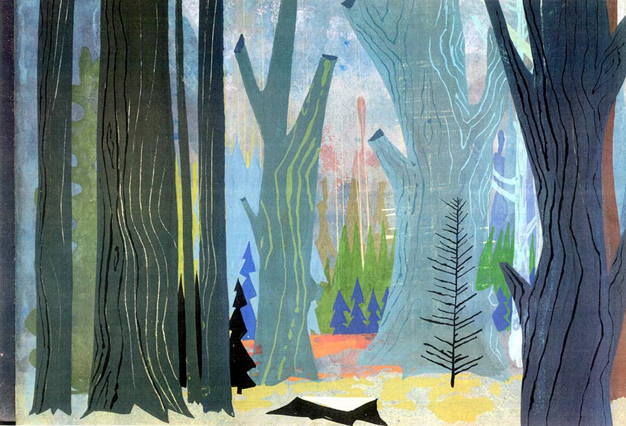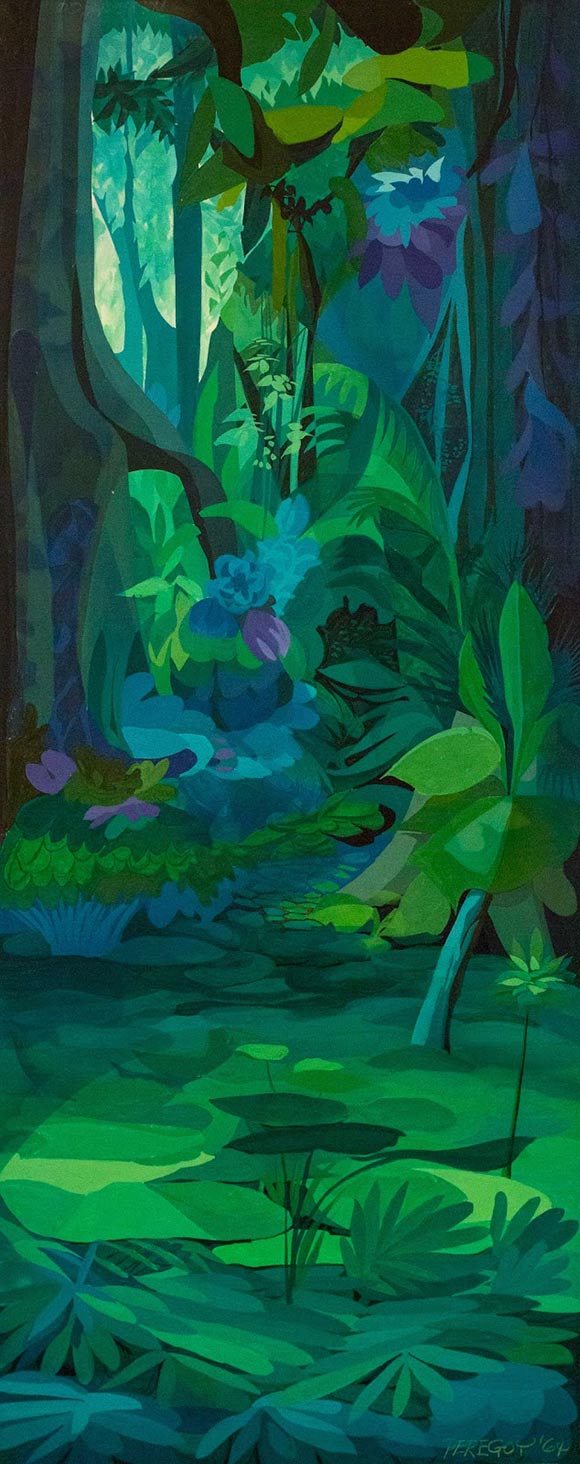 “Peregoy in the 1950s was a true ‘Modernist’—a talented fine art painter who brought Modernism to Disney with strong abstractions in both layout and painting technique,” Pocahontas art director Michael Giaimo told me when I wrote the book Cartoon Modern: Style and Design in Fifties Animation. “His work was a purer abstraction of reality as opposed to, say, the beautifully designed but more grounded work of Eyvind Earle.”