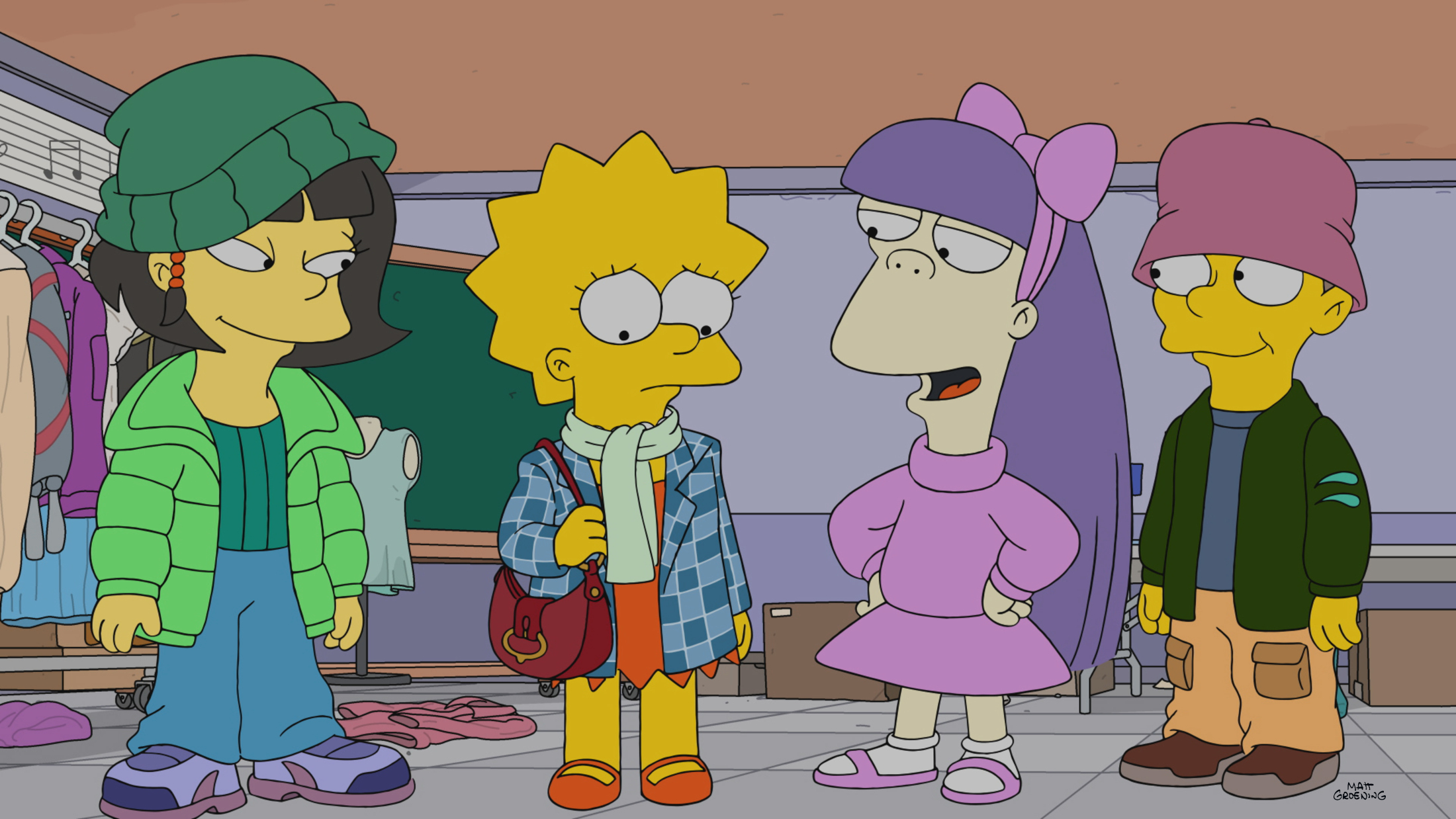 The season premiere, titled “Thrifty Ways to Thieve Your Mother,” puts Lisa in the spotlight when she discovers Marge’s vintage ‘90s wardrobe. What begins as an innocent raid of her mother’s closet quickly propels Lisa into Springfield Elementary’s ultra-elite fashion club. But when the supply of retro looks runs thin, things take a turn.