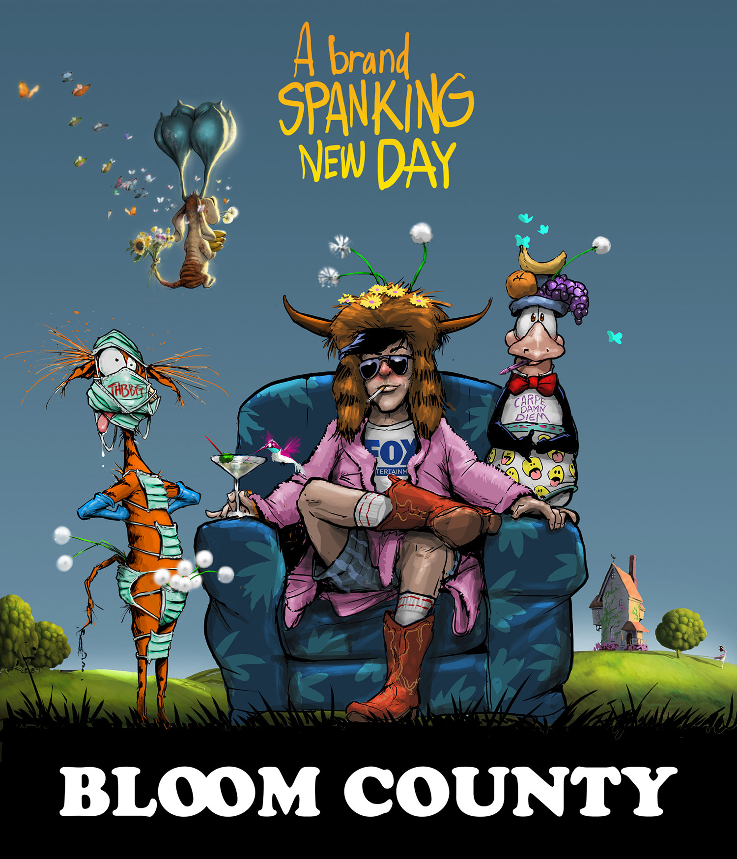 - The series will be co-written and executive-produced by the strip’s creator Berkeley Breathed, 64. The show’s general premise will be familiar to fans of the strip: “Bloom County centers on a collapsed lawyer, a lobotomized cat and a penguin in briefs and fruit headwear living in the world’s last boarding house in the world’s most forgotten place deep in the dandelion wilds of FlyWayWayOver country.”