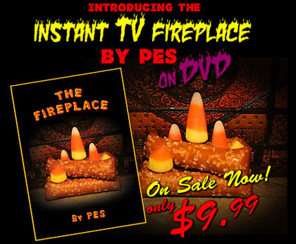 New Yorkers have enjoyed their live-action Yule log TV program for decades, but now every home in America can have a roaring animated fireplace on their TV courtesy of indie animator PES. His new dvd, The Fireplace, offers toasty warm loops of a pretzel stick-and-candy corn fire. Just $9.99 at EatPes.com.