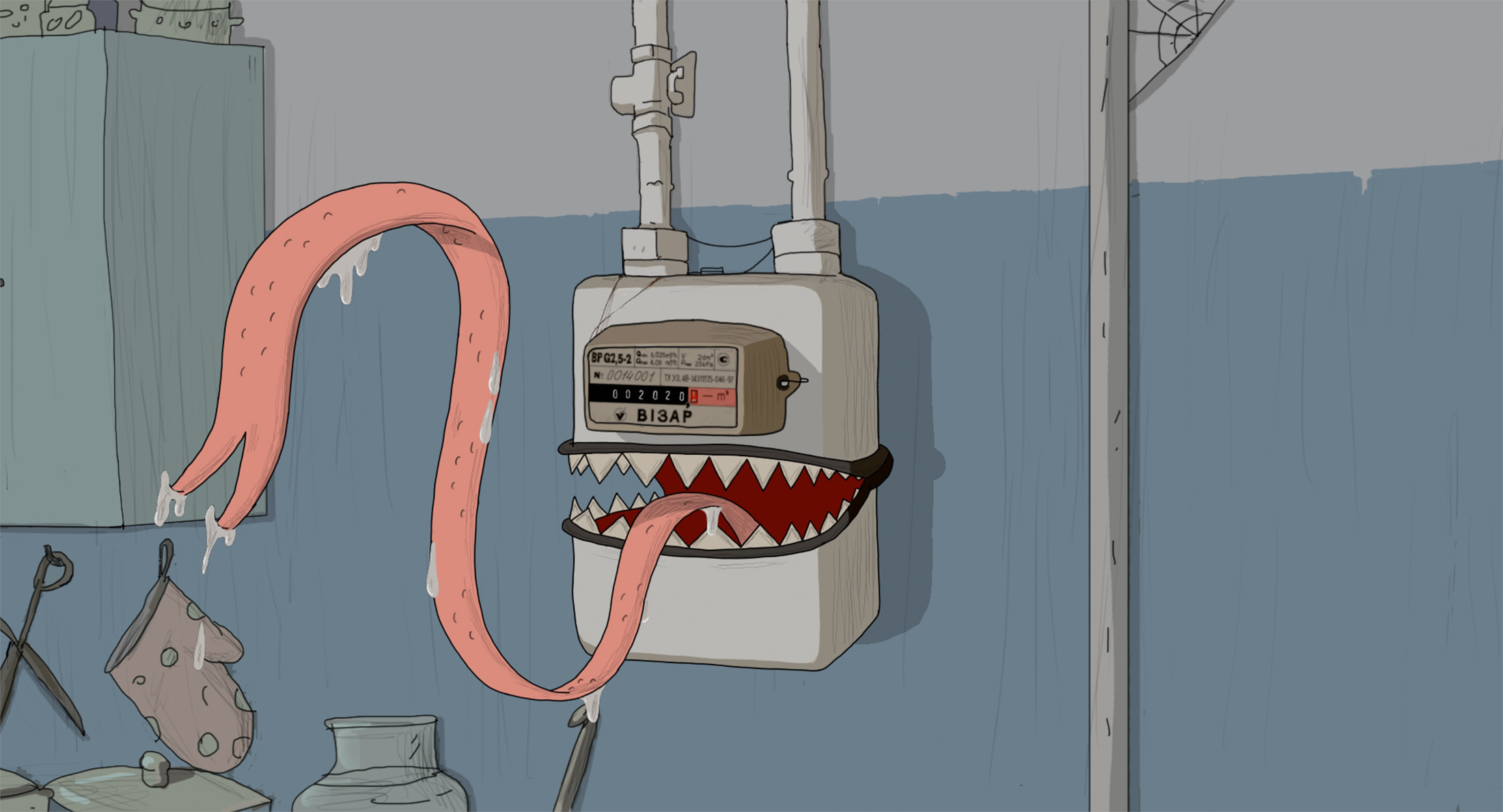 “For me, electricity and gas counters are symbols of poverty,” Lyskov says. “They keep people in constant tension and stress. At the same time, they show our alarming dependence on Russian energy sources.” Like a snake slithering out of the wall, the tongue embodies menace without fixed meaning. Corruption, occupation, hunger, despair — all of them, none of them. It’s the sort of thing you can’t unsee, like the Glovo couriers forever buzzing past you on bikes: the economy keeps moving, even when the ground is breaking.