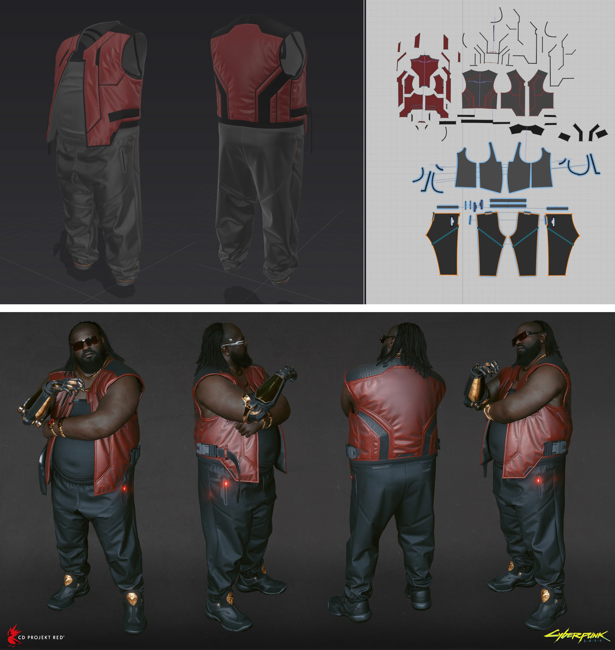 Marvelous Designer, the widely used software for making, editing, and reusing 3d clothes, is one of the most important tools in CD Projekt Red’s character creation pipeline. Almost all the characters’ clothes in Cyberpunk 2077 were created with its help. It was also used for some cybernetic parts, backpacks, ammo bags, and even weapons.
