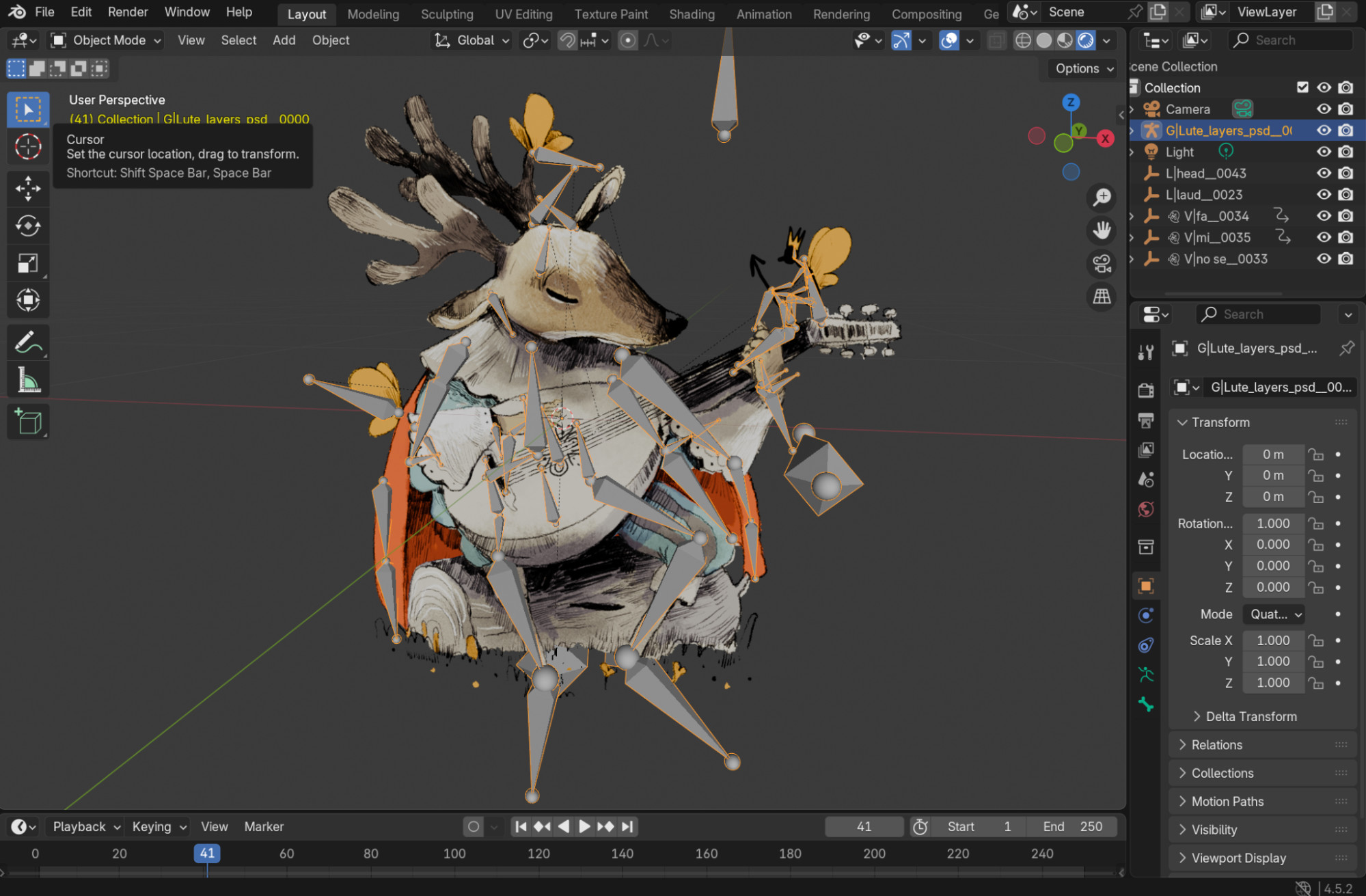 2D rigs can be created directly in Moho using its vector tools optimized for animation, or imported as fully layered PSD files created in software like Photoshop, Clip Studio Paint, or Procreate.