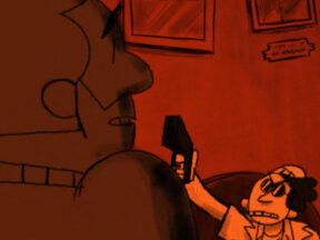 Manney’s latest is subverts “traditional western cartoon aesthetics” which he feels are often used to dilute the true toll of violence.