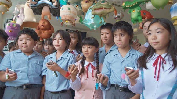 “Jellyfish Eyes” marks the feature film directing debut of Japanese superstar artist Takashi Murakami. Described as a post-Fukushima sci-fi fantasy, the $7 million live-action/CGI hybrid film incorporates Murakami’s goofily-styled creatures throughout, as well as an appearance by his fine art character Miss Ko2.