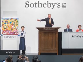 The painting titled “The Kaws Album” was expected to sell for $1 million, but went for nearly $15 million.
