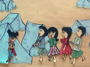 The film takes viewers inside Palestinian tents where children are taught cut-out animation as a vital means of processing and expressing their experiences through storytelling.