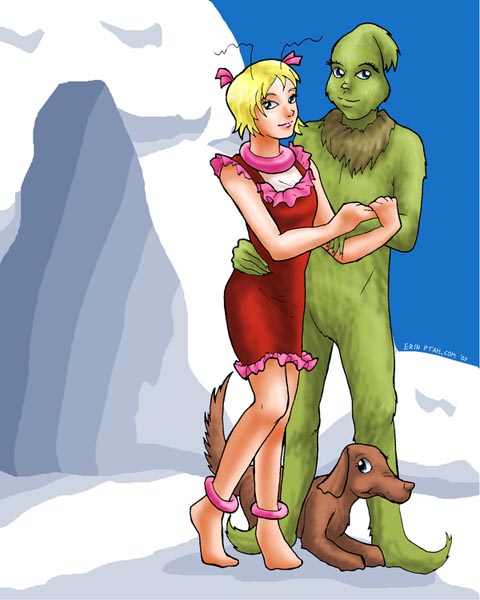 The Grinch and sexy Cindy Lou Who…just for you! (Artwork by Erin Ptah. Artist’s statement: “I’m a sucker for pairings involving …