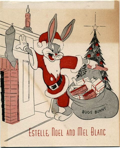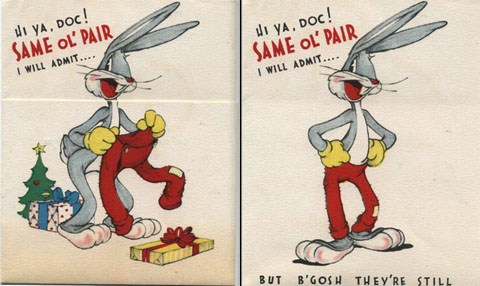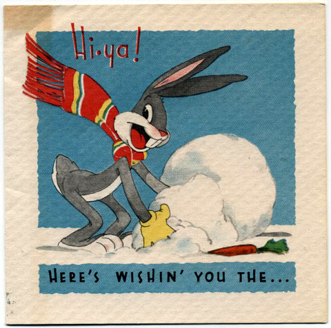 This was another in the series of Bugs Bunny Christmas cards commercially released in the 1940s – this particular one sent by WB cartoon …