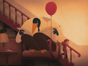 Hugo’s mother came back home. The next day, when Hugo wakes up, he finds black feathers scattered all over the house.