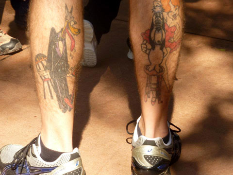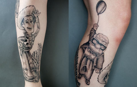 This guy really likes Pixar. What else can you say? Click on the picture to see the tattoos up close.