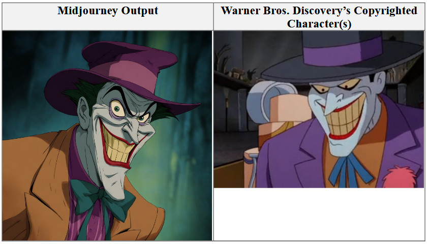 Pictured at top: Evidence submitted by Warner Bros. in its lawsuit against Midjourney