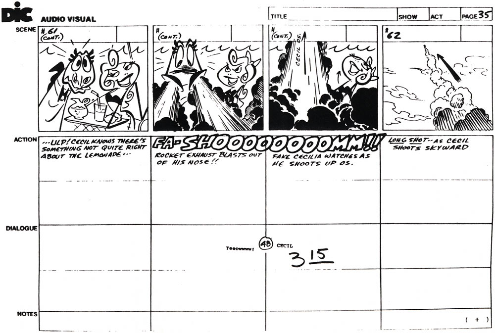 File this under “Weird Things I’ve Accumulated Over the Years.” While cleaning out some boxes recently, I ran across photocopies of a complete 70-page storyboard from the short-lived TV series The New Adventures of Beany and Cecil (1988). It’s for the episode “The Courtship of Cecilia.” I’m pretty sure the boards are drawn by a pre-Batman Bruce Timm; any Brew readers that can confirm, please do.