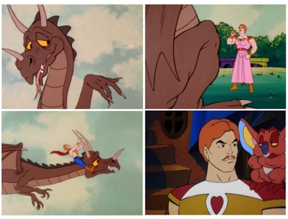 In He-Man: MOTU’s sister series, She-Ra: Princess of Power, She-Ra, in an episode titled “The Laughing Dragon”, encounters a socially put upon Dragon named Sorrowful.