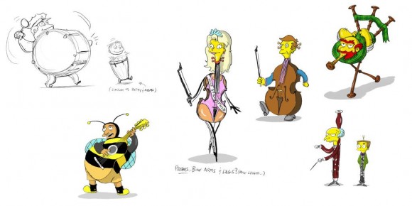 [UPDATE]: Simpsons consulting producer David Silverman has posted some of his designs for the Music Ville opening on his Twitter account @Tubatron. Click to enlarge: