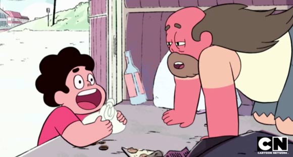 Anyway, Onion proved that he’s not as cute and innocent as he appears on the surface. The layers unraveled to reveal that he was a thief. Not only did he pick pocket Steven’s G.U.Y., but he also stole from the vending machine. How he managed to actually get inside the machine is beyond me, but nevertheless, Onion could be classified as a delinquent. The only thing to blame for that is because he, too, lacks a male role model. His dad’s always out to sea, leaving him to wait endlessly. That would make even the best kid crack.