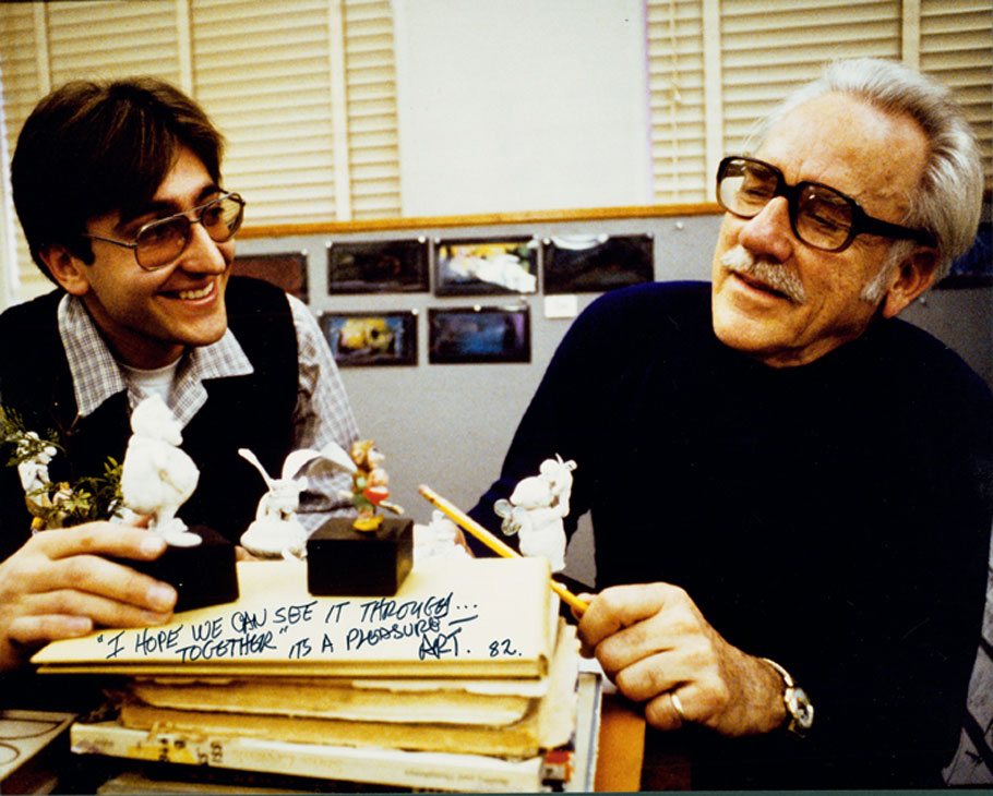New chapters of Mouse in Transition will be published every Friday on Cartoon Brew. It is the story of Disney Feature Animation—from the Nine Old Men to the coming of Jeffrey Katzenberg. Ten lost years of Walt Disney Production’s animation studio, through the eyes of a green animation writer. Steve Hulett spent a decade in Disney Feature Animation’s story department writing animated features, first under the tutelage and supervision of Disney veterans Woolie Reitherman and Larry Clemmons, then under the watchful eye of young Jeffrey Katzenberg. Since 1989, Hulett has served as the business representative of the Animation Guild, Local 839 IATSE, a labor organization which represents Los Angeles-based animation artists, writers and technicians.