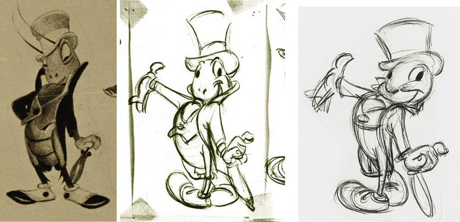 The cricket had been drawn like a little black grasshopper, and the problem there was getting a character that Walt would accept. Now, that was a tough job because like I tell everybody, the cricket looked like a cockroach. So each time I’d go up there, Walt would kind of frown and say, “He’s not cute enough,” or something.